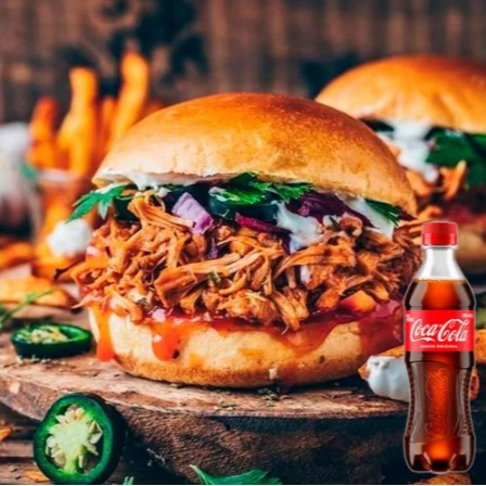 Pan brioche, vegetales de temporada, jamón y queso, cerdo, tocineta y salsas de la casa. + Gaseosa pet 250 ml ( sabor a disponibilidad de la tienda )