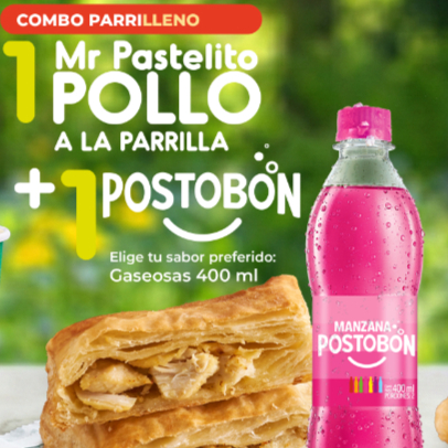 1 mr pastelito pollo parrilla + 1 gaseosa postobon sabor surtido ( disponibilidad del punto de venta )