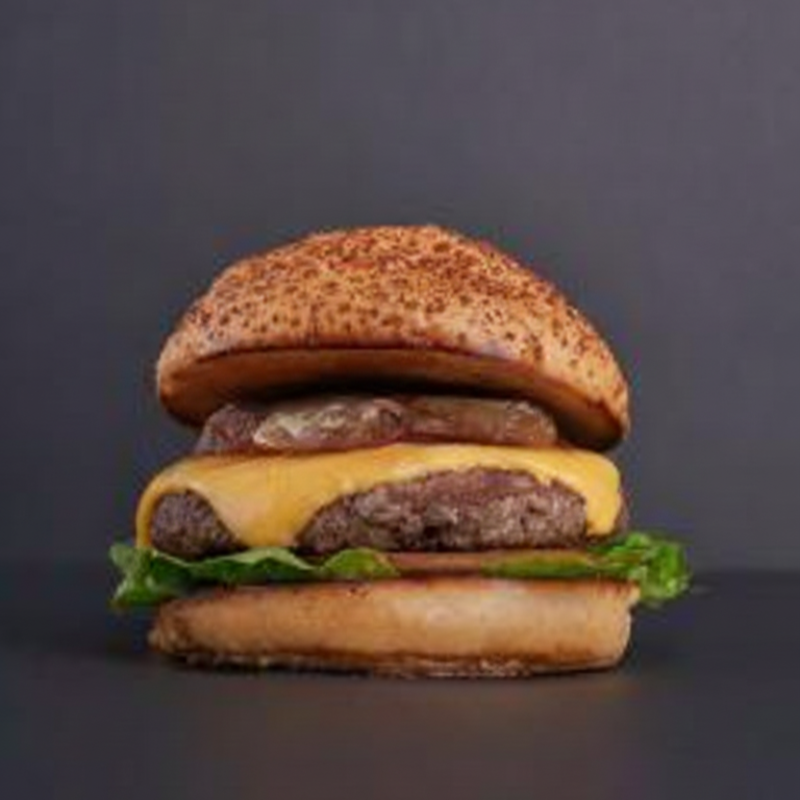 Pan parmesano, mayonesa 52 street, carne de res artesanal (130 g), queso cheddar, tocineta, vegetales (cogoyo europeo y tomate) y cebolla caramelizada.