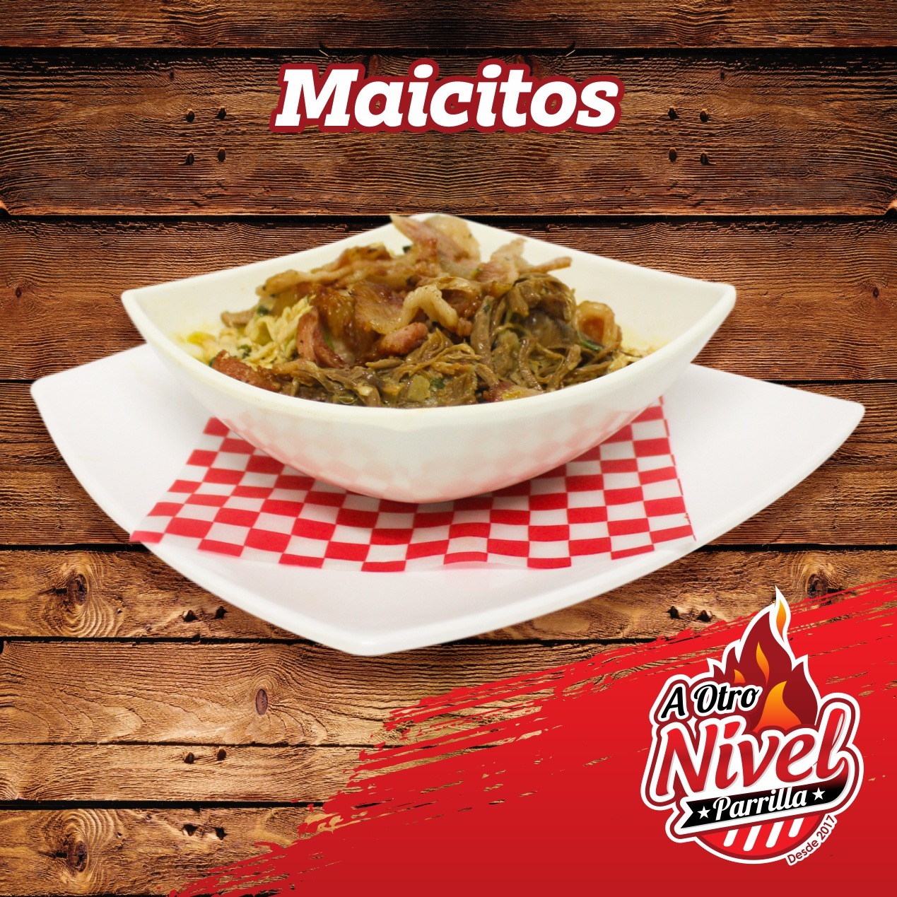 Lechuga, maicitos, carne, pollo desmechado, abundante queso y salsas de la casa.