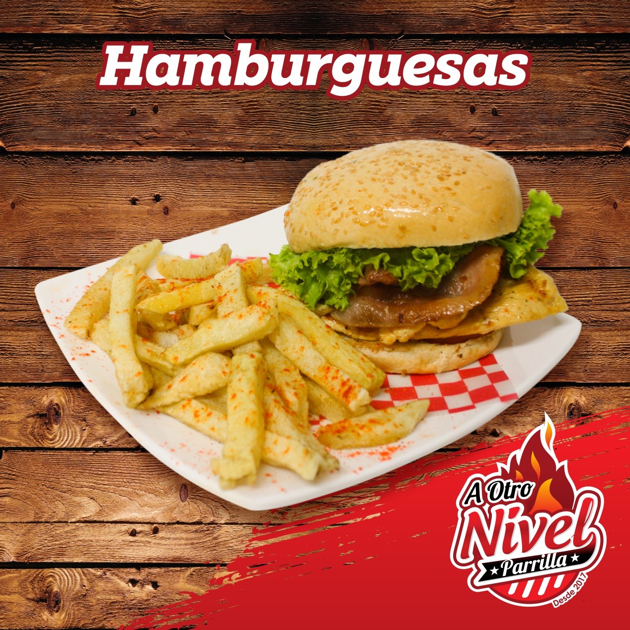 Carne, tocineta, abundante queso, lechuga, tomate y ripio.