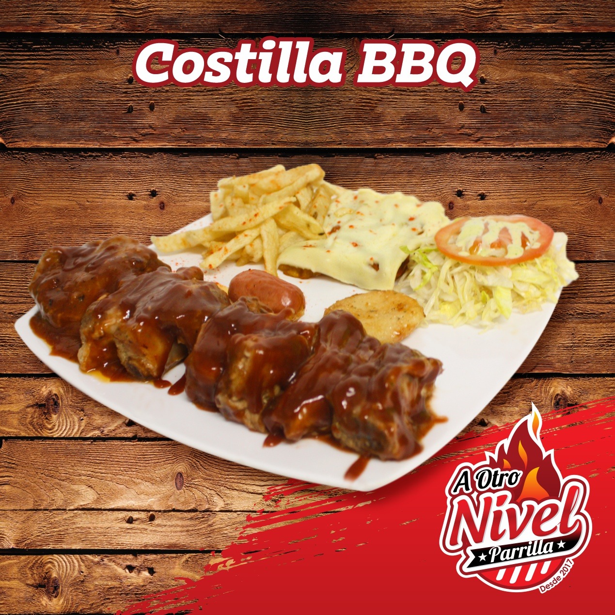 Costilla BBQ*2 Arepas, papa, cocida y ensalada.