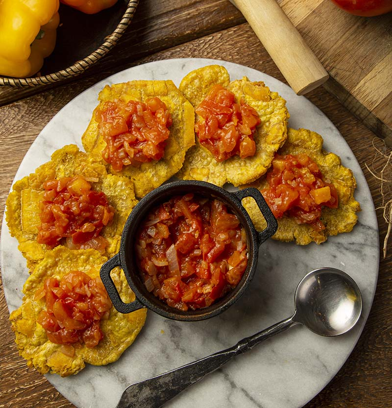 Cerdo, pollo, 1 Salchicha, 3 butifarras, 2 chorizos, 3 huevitos, 2 arepas, papas a la francesa y platanitos