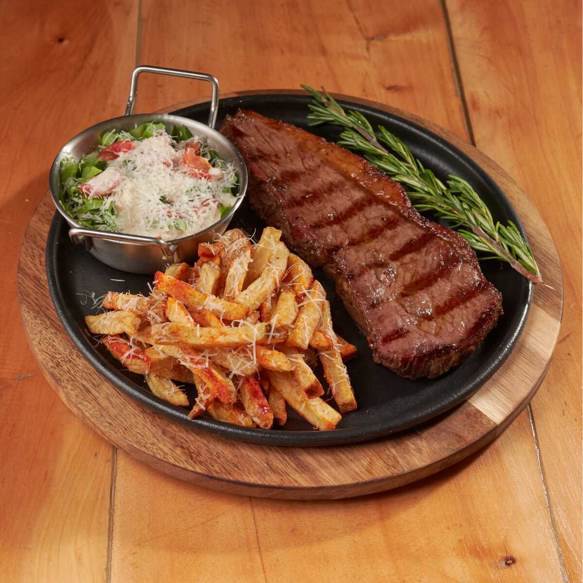 300 G de punta de anca ahumada a fuego lento, sellada a la parilla con mantequilla de ajo y romero para lograr un sabor inigualable; acompañado de 2 guarniciones a elección.