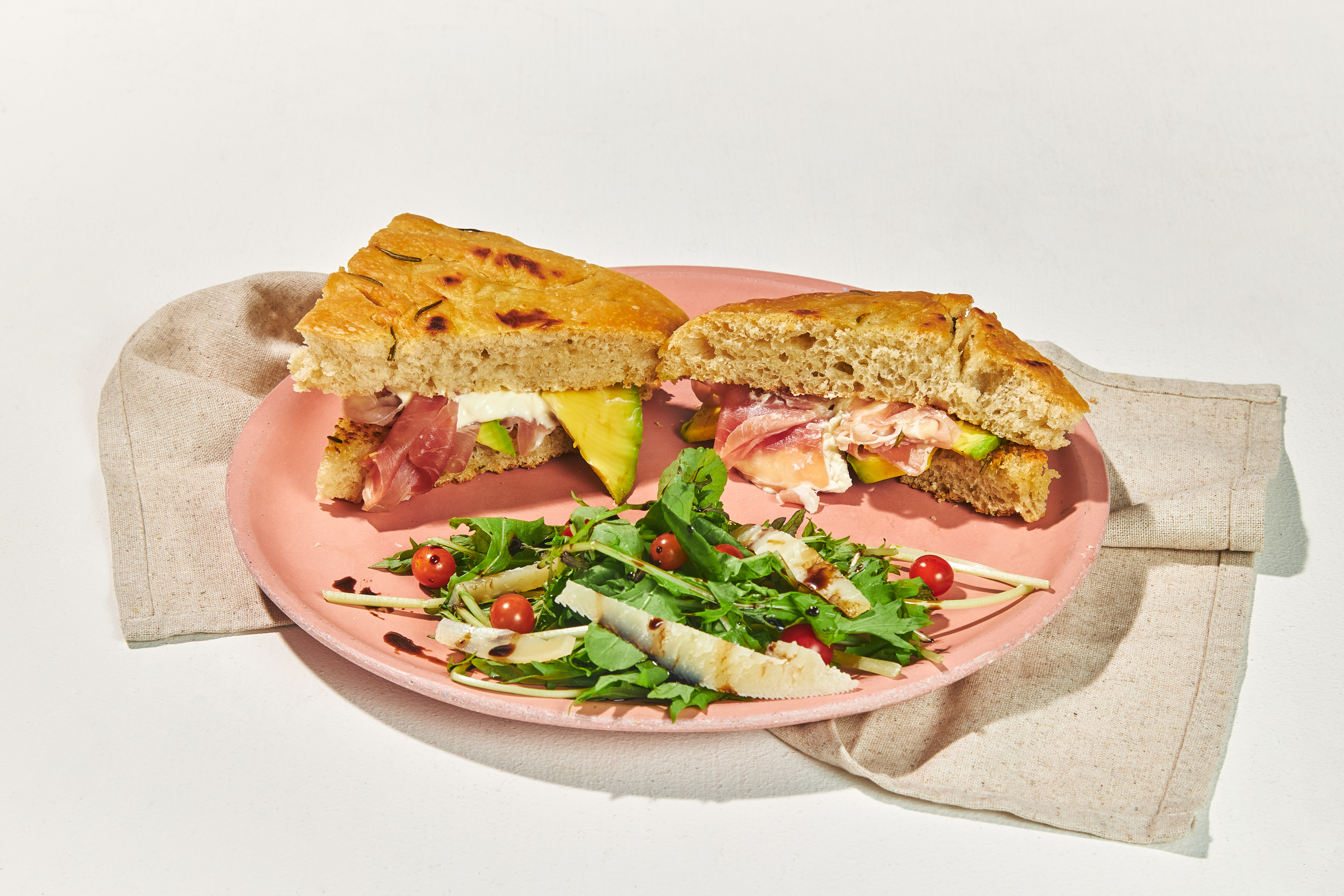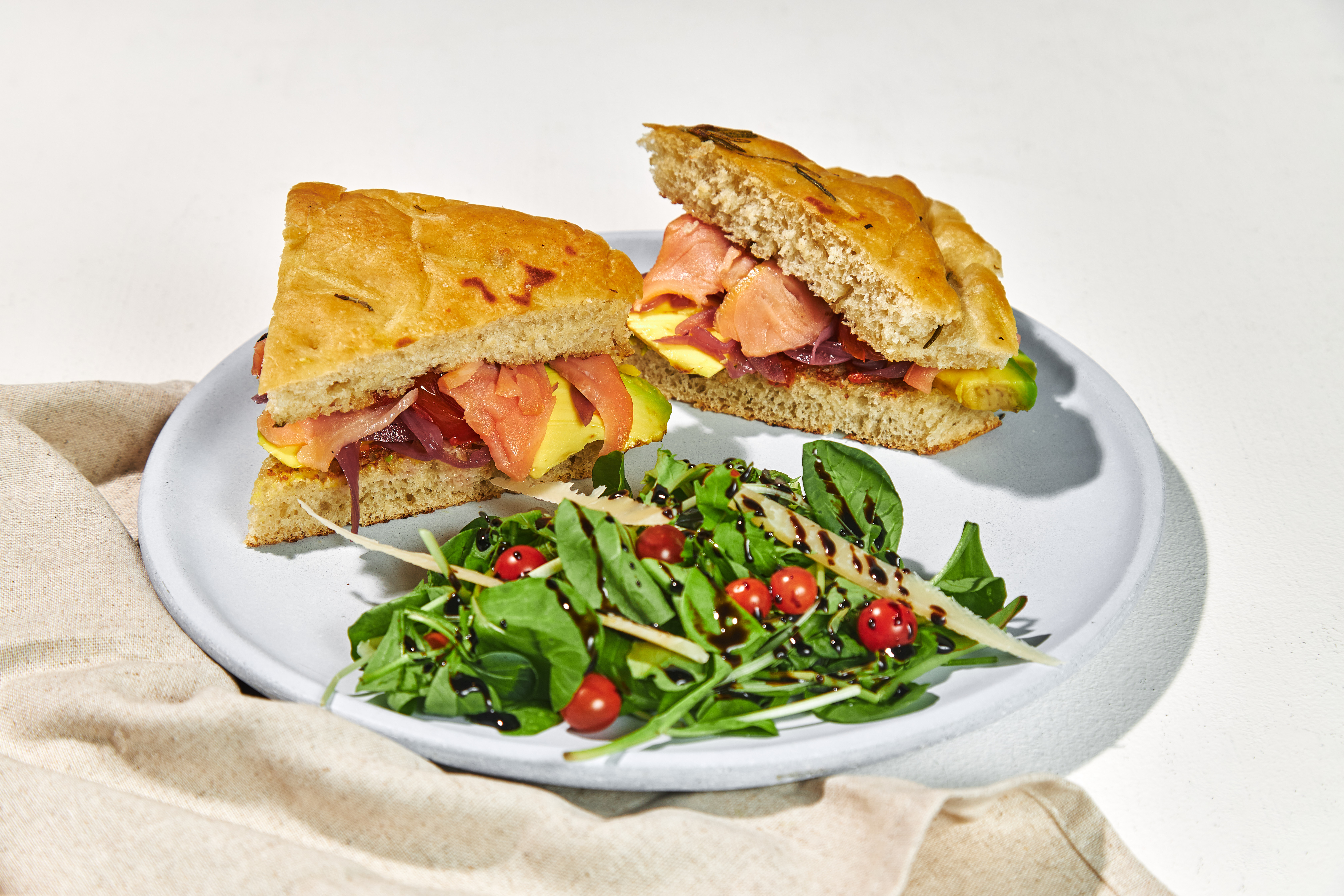 Con aguacate laminado, cebolla envinada, tomate cherry salteado, pesto verde y dip de eneldo, elaborados con delicioso pan focaccia artesanal o tortilla integral a elección y el acompañante que prefieras.
