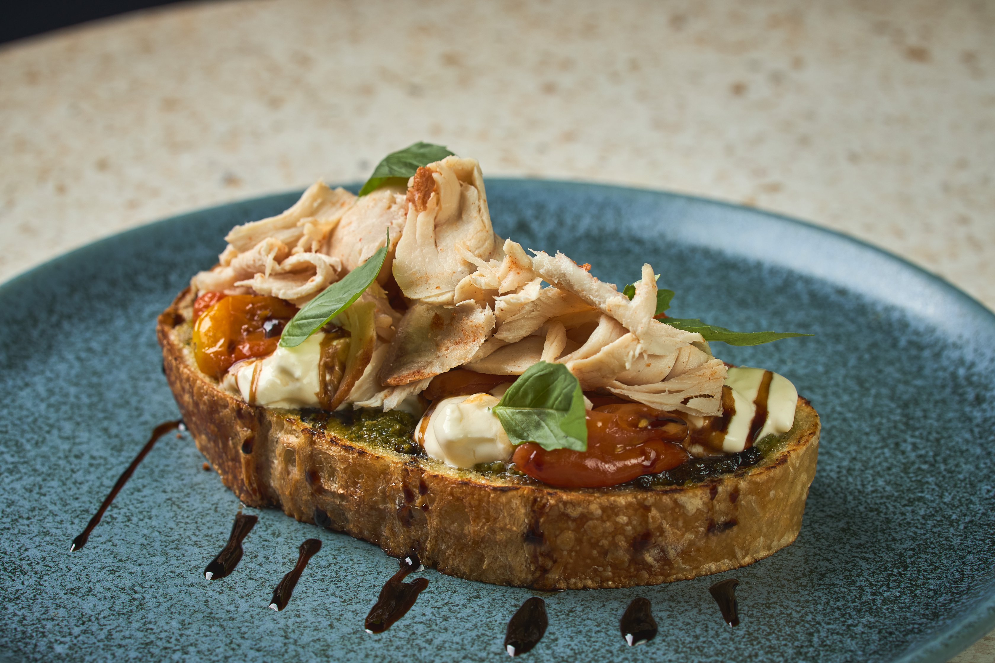 Pan artesanal crocante, stracciatella fresca, tomates confitados y un toque de reducción balsámica. Ligera, elegante y deliciosa.