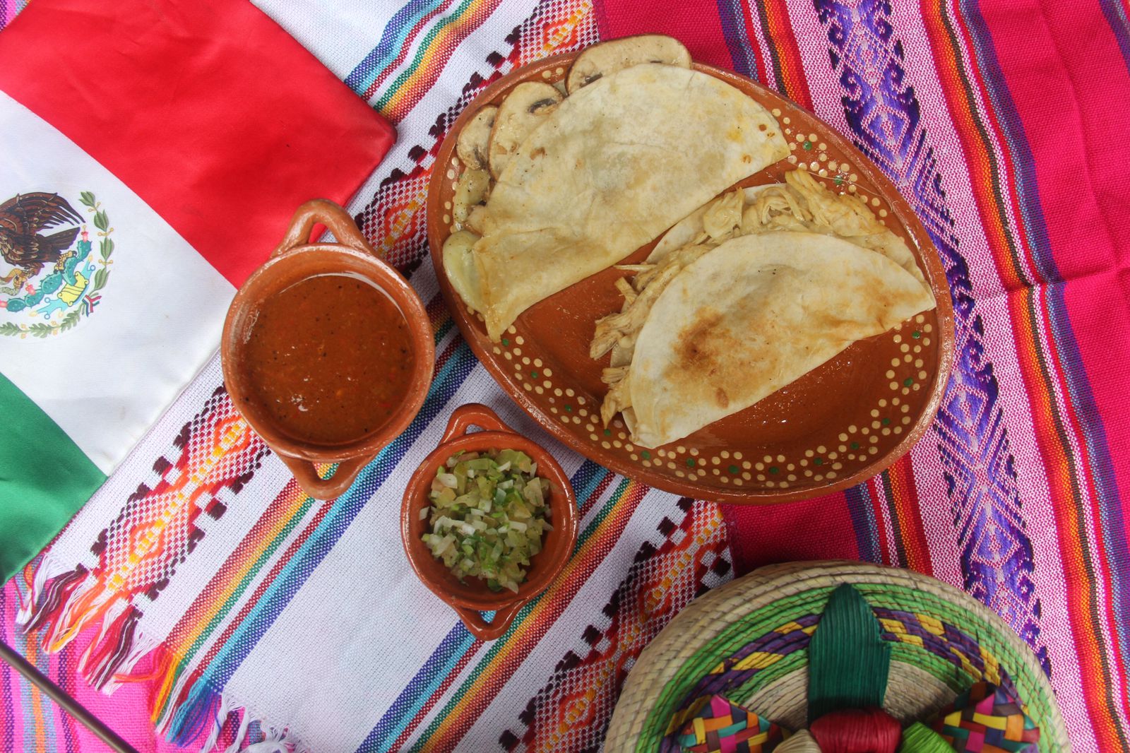 Tortilla de harina de trigo o de maíz doblada, rellena de champiñones rebanados con queso derretido.