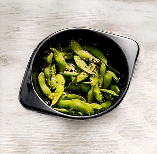 Edamame, sal gruesa y ajonjolí.