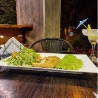 Solomito, pollo y mariscos acompañados de un mézclum de lechugas y vegetales frescos (zanahoria, tomates cherry, pepino, mango, y maíz tierno).