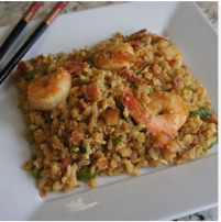 Arroz con trozos de lomo de cerdo, cebollín, tortilla de huevo, vegetales salteados y raíces chinas en salsa de soya, aromatizado con aceite de ajonjolí.