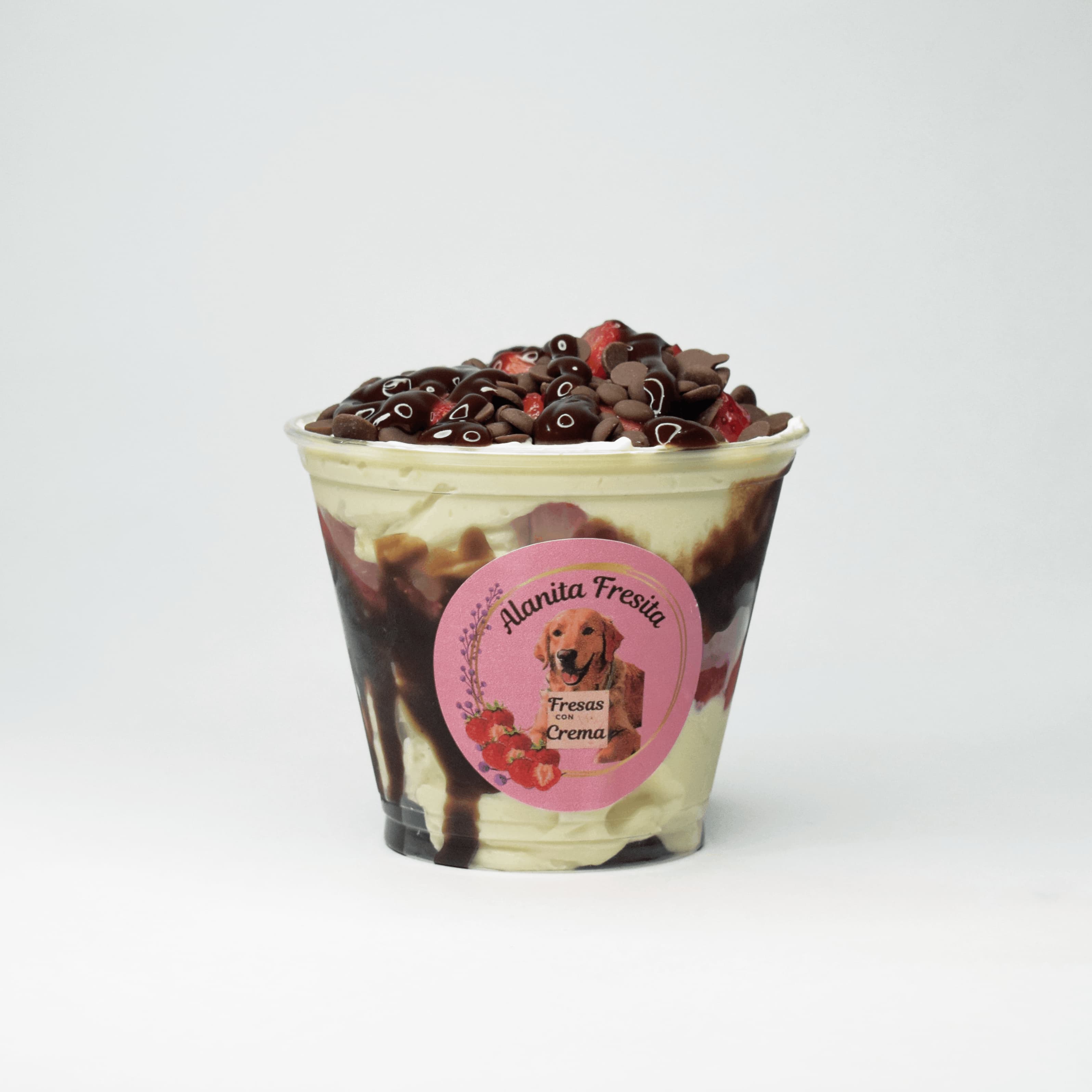 Deliciosa crema de leche artesanal, fresas picadas, 1 salsa a elección, 1 topping a elección.