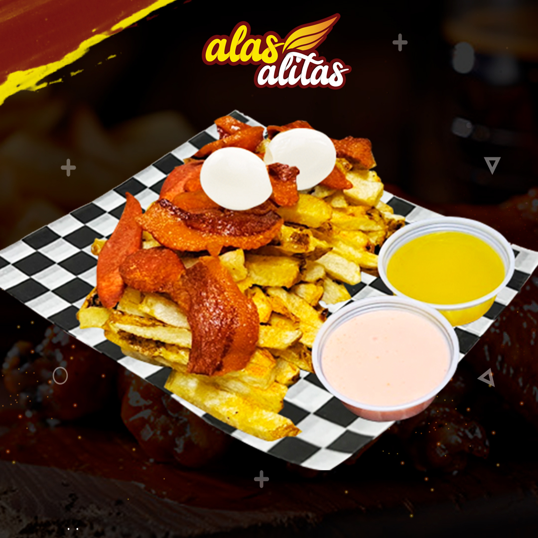 En Alas Alitas disfruta 5 jugosas alitas con tu salsa favorita, 200g de papas a la francesa bien crujientes y una refrescante gaseosa de 250 ml, un combo irresistible que te hará volar de sabor.