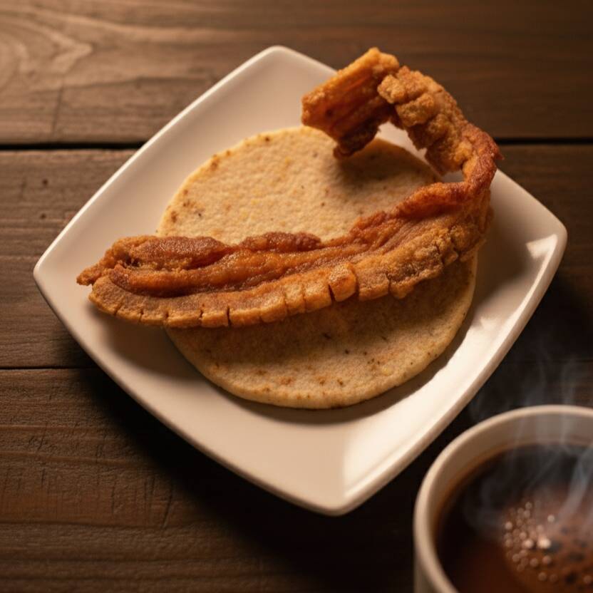 Auténtica arepa de maíz, combinada con chicharrón crocante. Sabor tradicional y contundente.