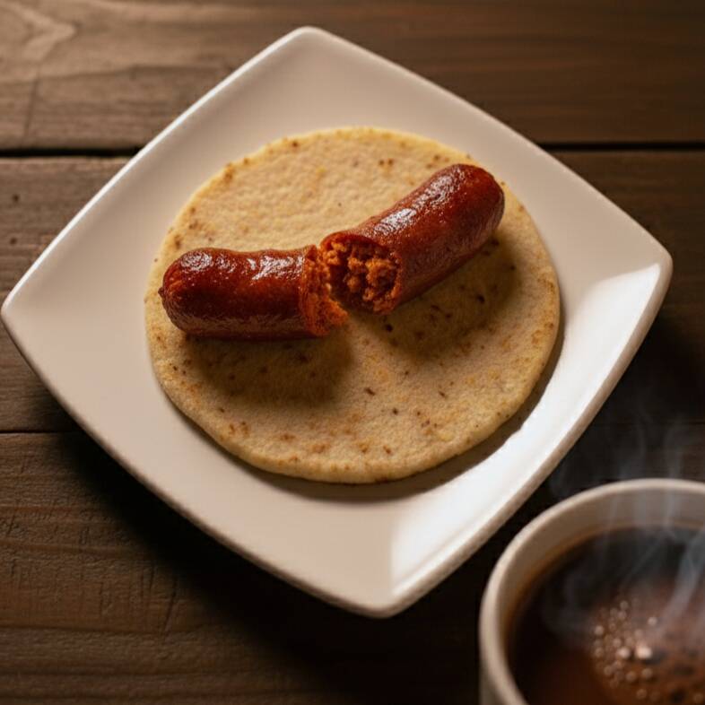 Desayuno tradicional: Arepa de maíz con chorizo antioqueño