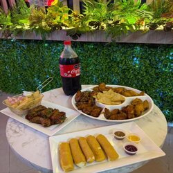 Alitas 20 uds con arepa frita, costillas 400 g, porción de papas 200 g, palitos de queso 5 uds, Coca-Cola 1.5 L.