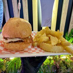 Carne artesanal, queso mozzarella, cebolla, tomate, lechuga, tocineta, salsa BBQ.