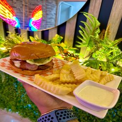 Carne artesanal, queso mozzarella, tocineta, salsa BBQ.