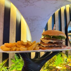 Doble carne artesanal, doble queso mozzarella, doble tocineta, salsa BBQ.