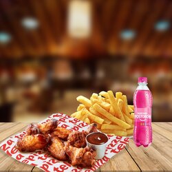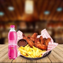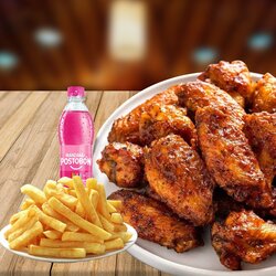 30 Alitas, papas a la francesa y gaseosa de 250 ml.