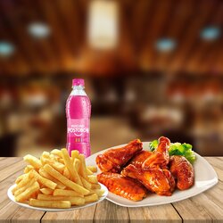 8 Alitas, papas a la francesa y gaseosa de 250 ml.
