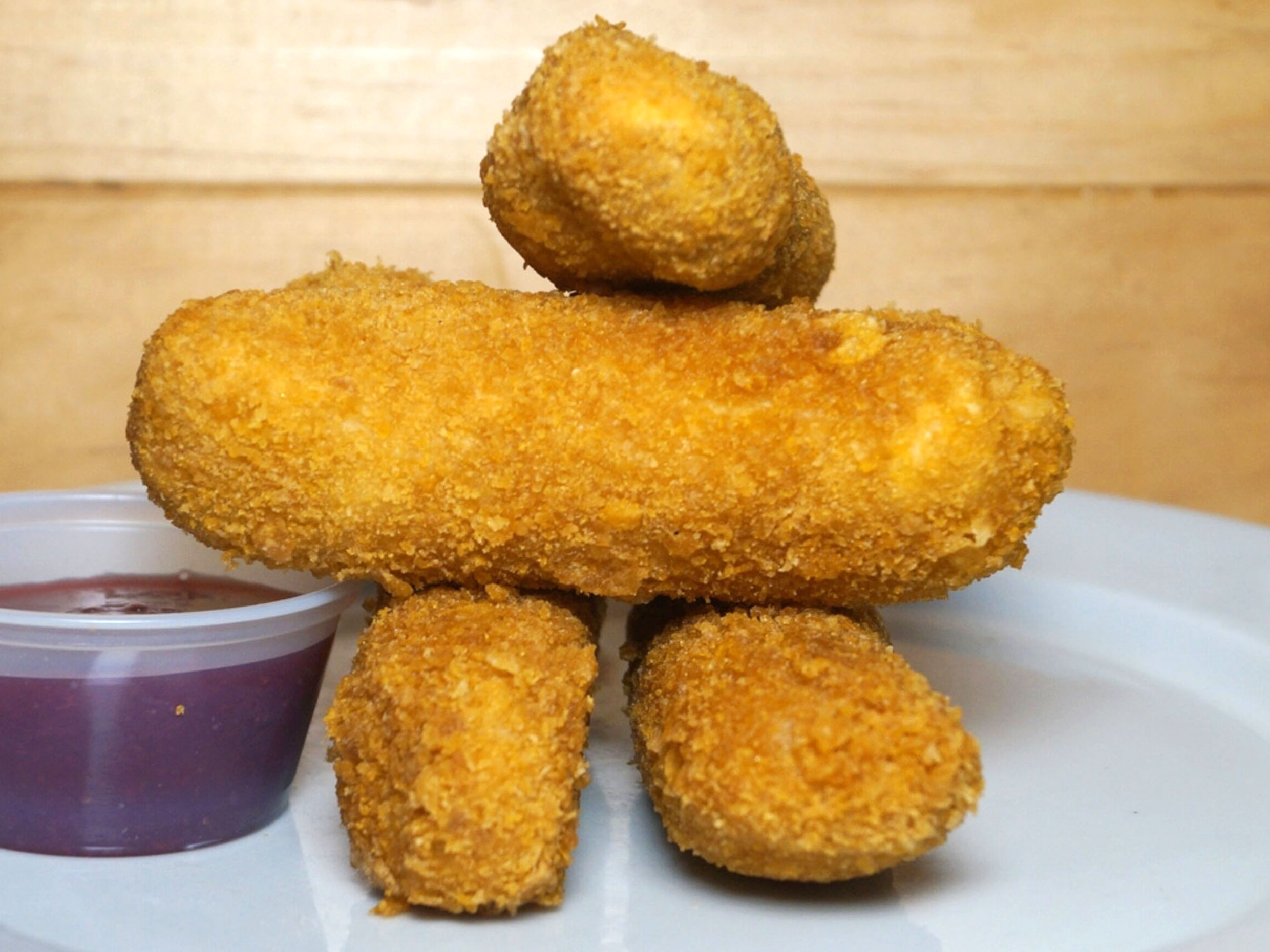 Deditos de queso 5 unidades y salsa frutos rojos.