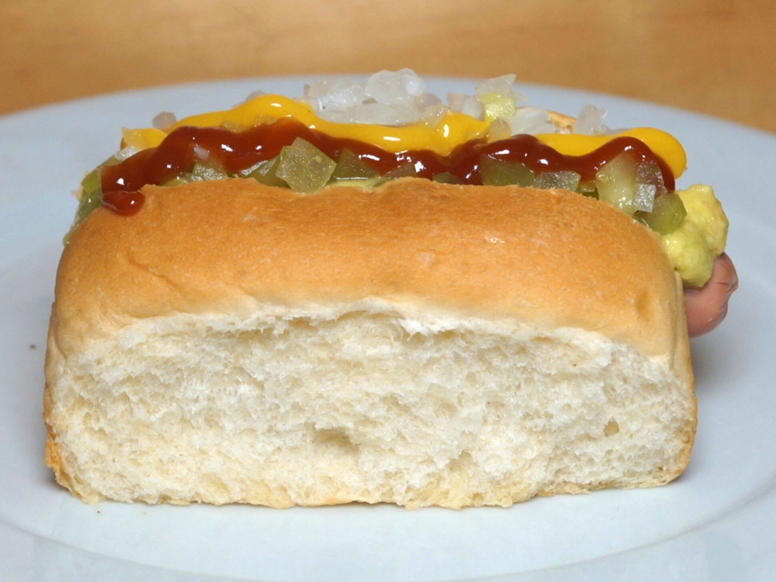 Perros cebolludos con salchicha, pan artesanal y salsas (rosada, roja, piña, tártara).