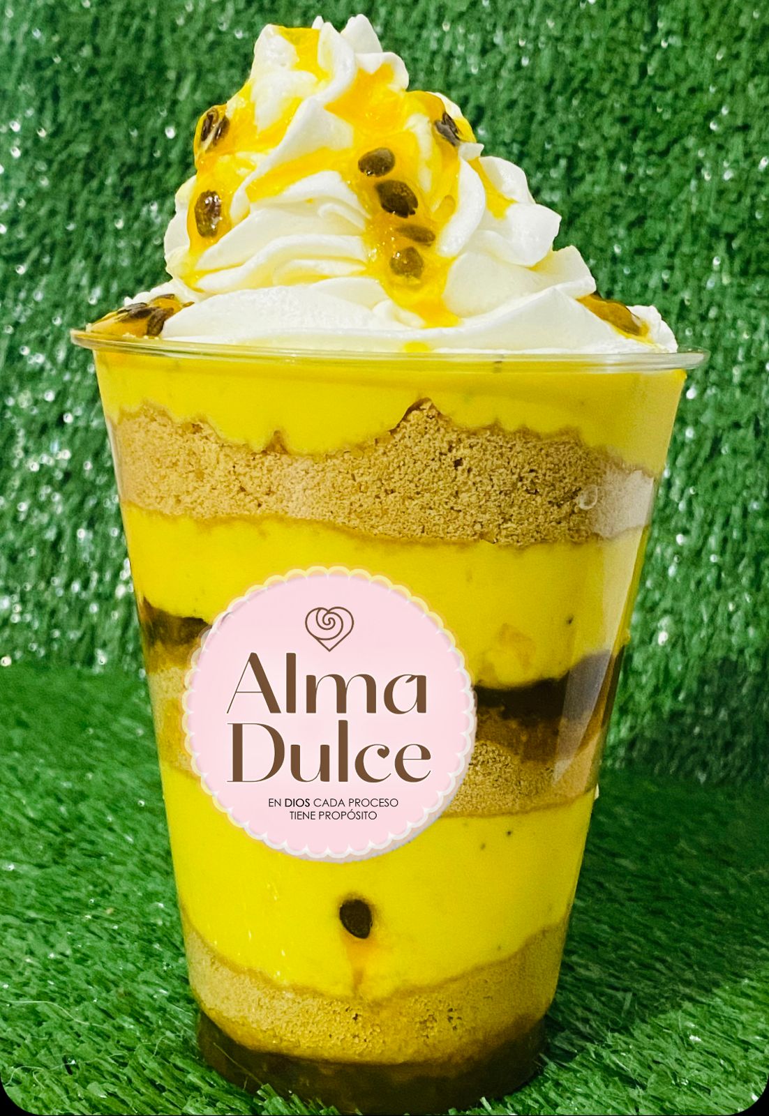 crema de Maracuyá, capas de galleta y base de syrup de Maracuya.
