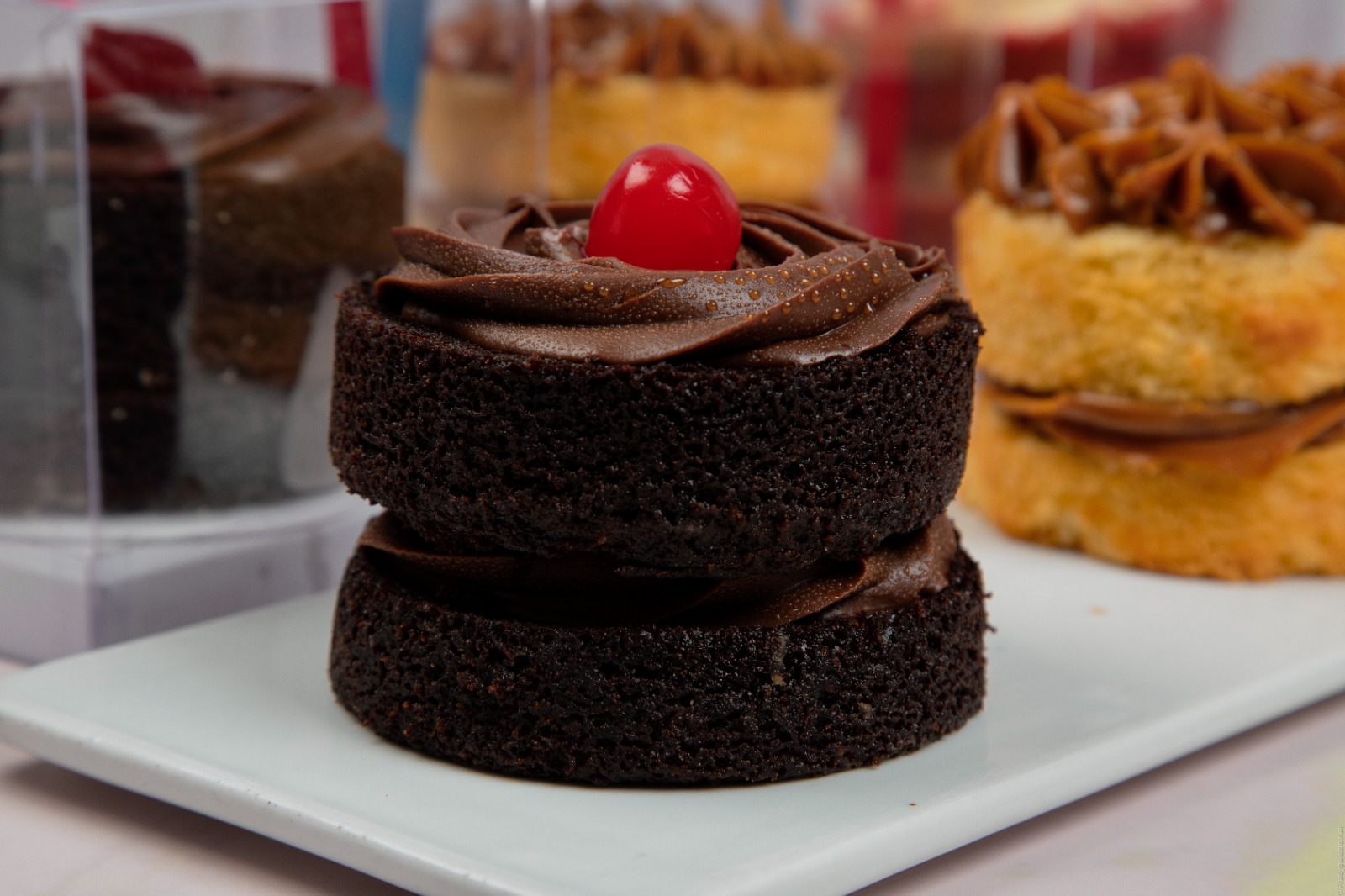 Deliciosa y esponjosa torta de chocolate, rellena con una mezcla exquisita de chocolate, decorada con crema de chocolate.tamaño 9 cms alto 5 cms 1-2 porciones.