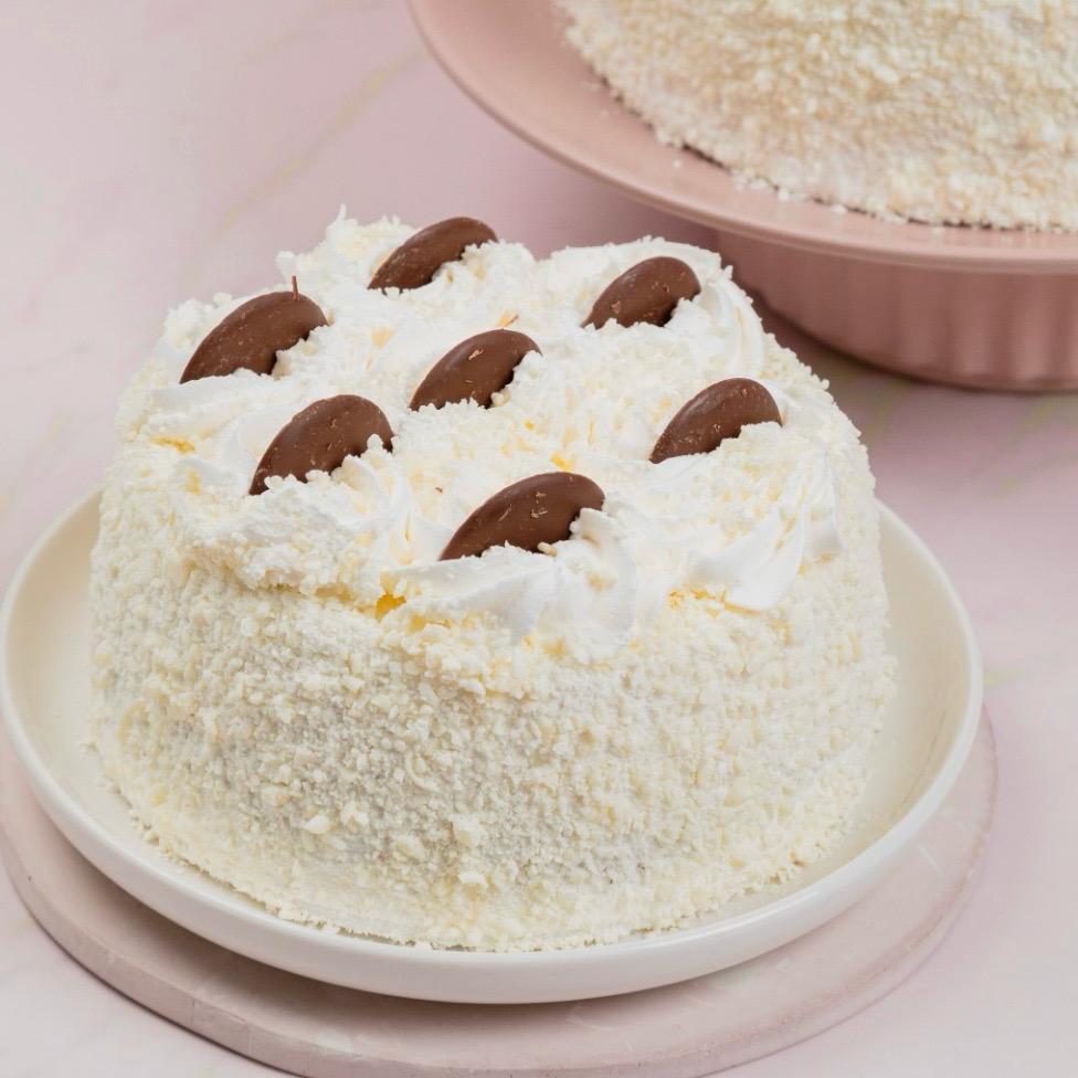 Bizcochuelo bañado en deliciosa mezcla de leche entera, crema de leche, leche condensada, cubierta con crema de vainilla y chocolate blanco, 8 porciones.