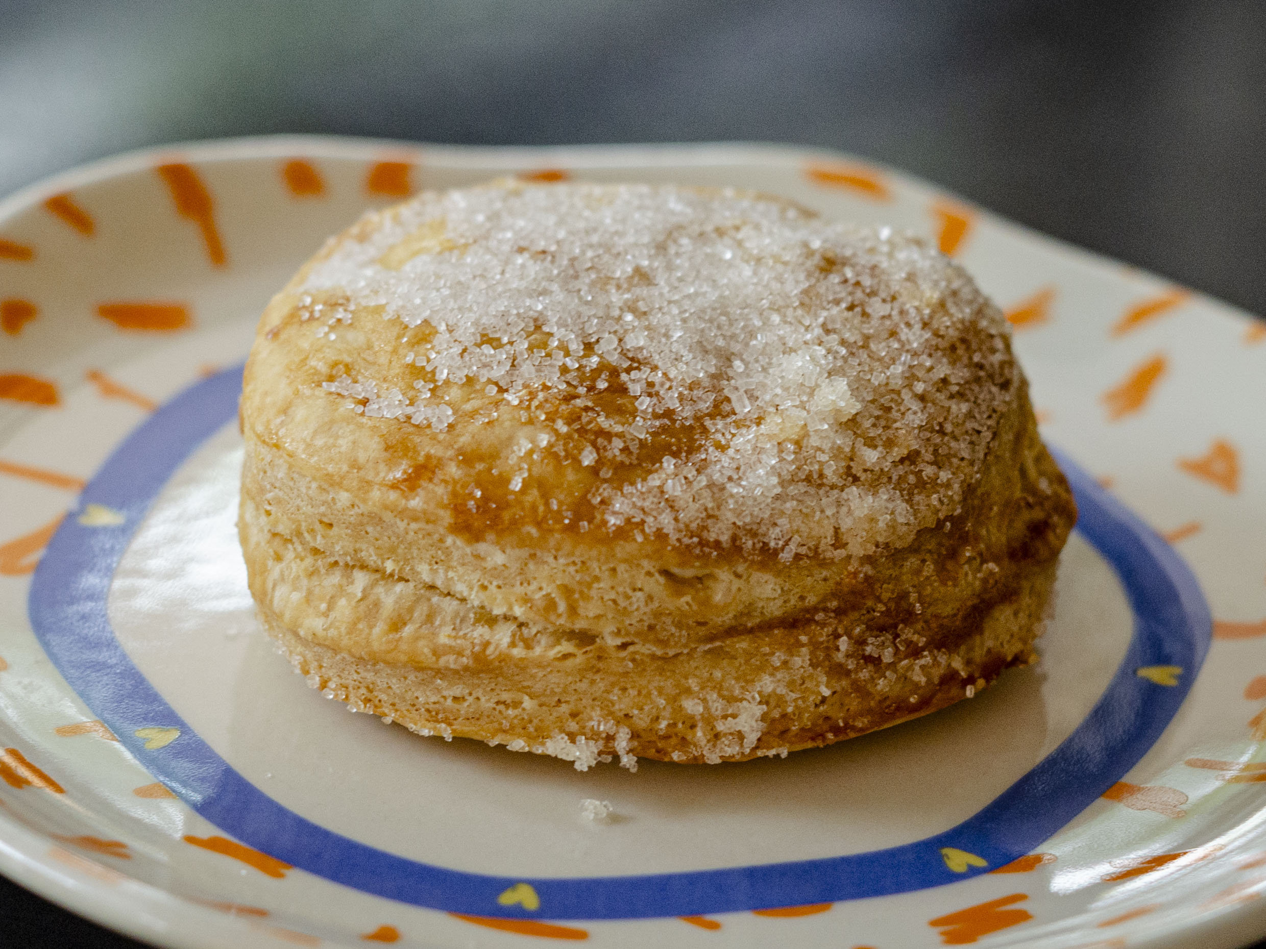 Deliciosa torta de almojabana, queso mozarrella y guayaba.