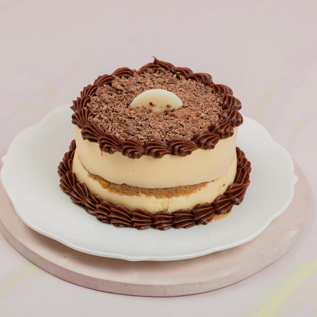 Tradicional postre italiano a base de crema de leche y queso crema, dividido por dos capas de bizcochuelo humedacido con una salsa de tres leches con licor de café. tamaño: 14,5 cms: 6- 8 porciones.