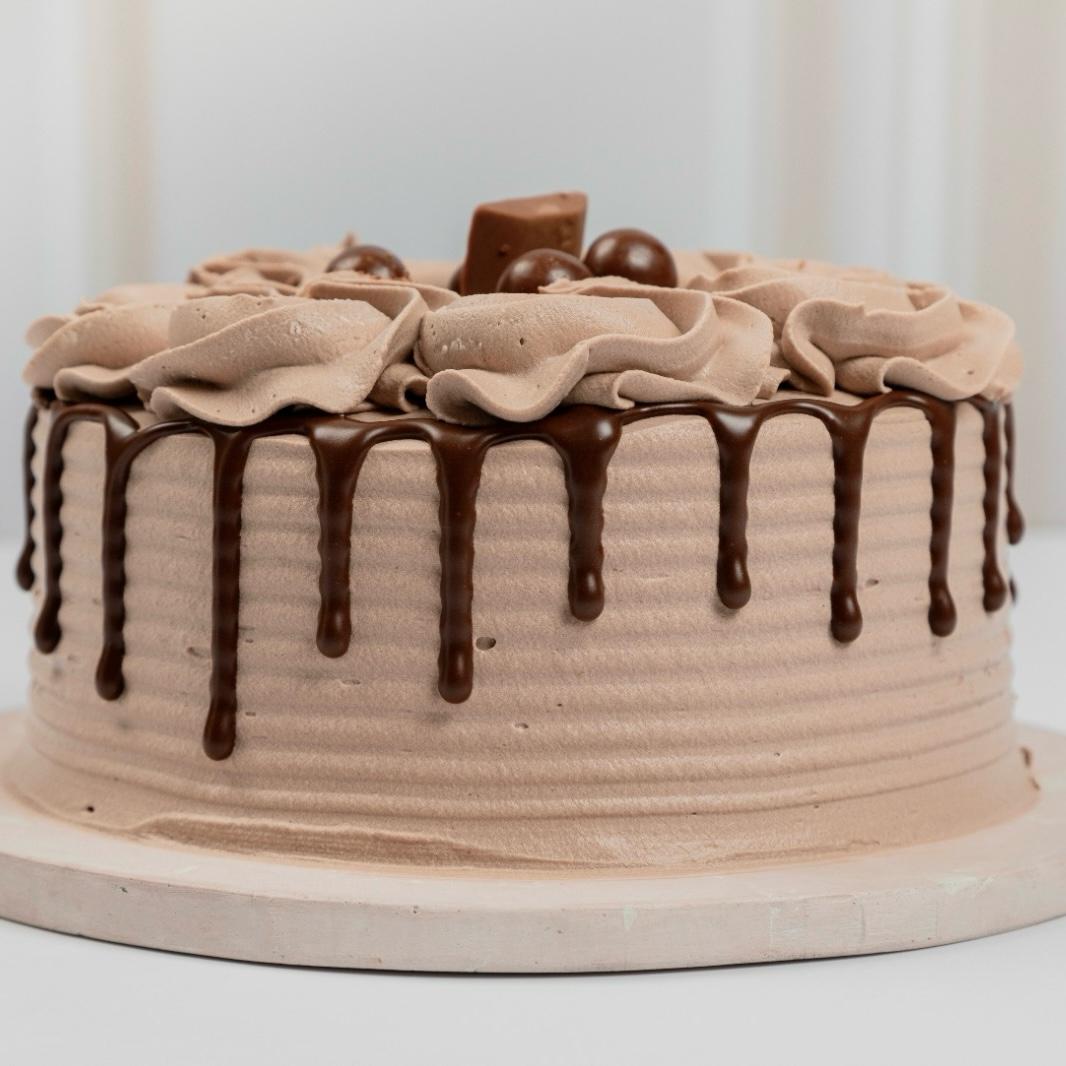 Deliciosa y esponjosa torta de chocolate, rellena con una mezcla exquisita de chocolate, decorada con crema de chocolate. tamaño:18 cms: 12- 16 porciones.