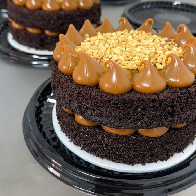 Deliciosa y esponjosa torta de chocolate, rellena con una mezcla exquisita de chocolate, decorada con crema de chocolate.tamaño 9 cms alto 5 cms 1-2 porciones.