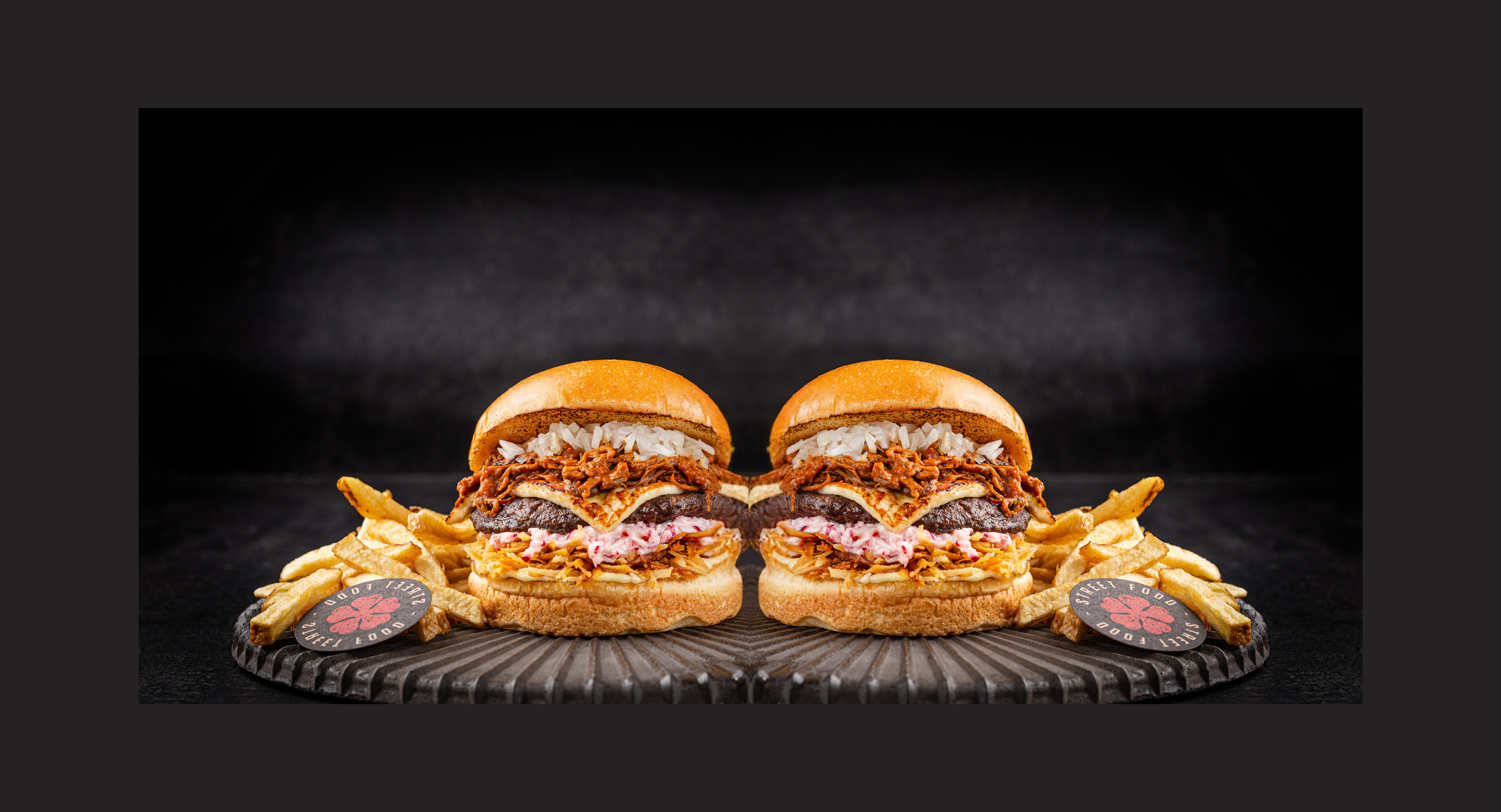 Pan brioche, salsa tártara, doble carne de res, doble queso cheddar, salsa anarquía Relish. Acompañada con papas a la francesa.