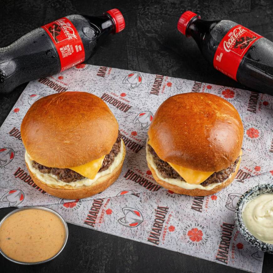 2 Hamburguesas Cheese + 2 Coca-Cola Original. SIN ACOMPAÑANTE 💔