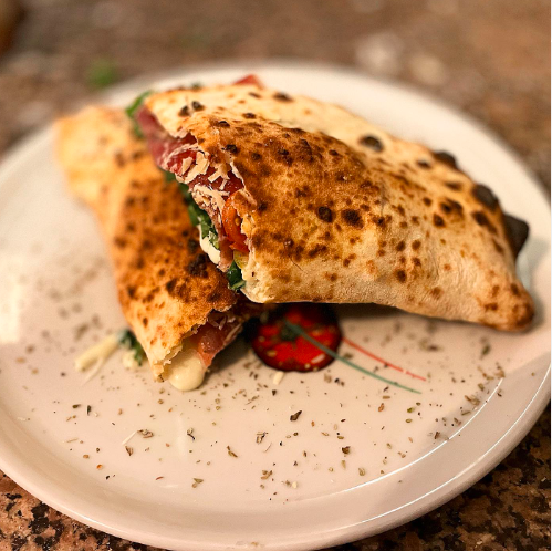 "(mozzarella fresca, provola, rugula, salame) (fresh mozzarella, provola, arugula, salame)"