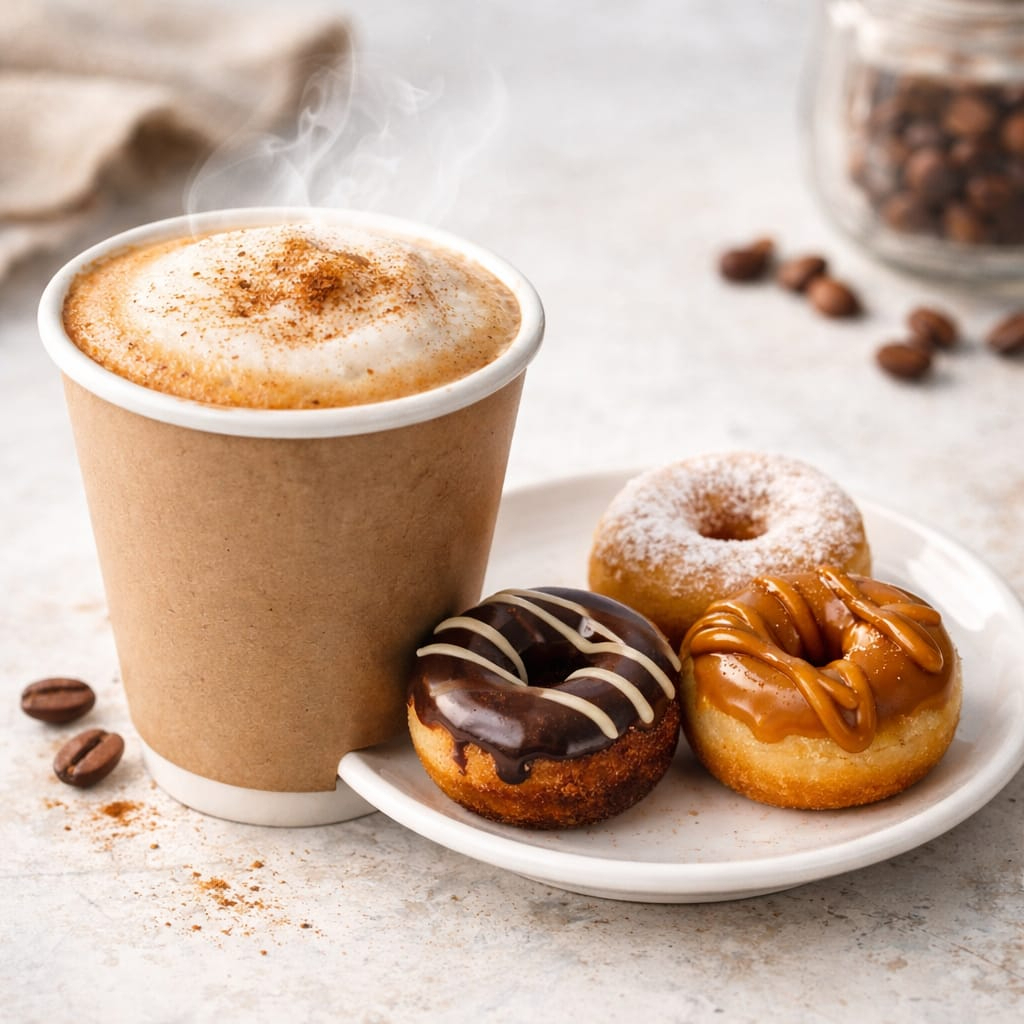 DÚO ANTOJO!! bebida caliente + 3 mini donitas !!