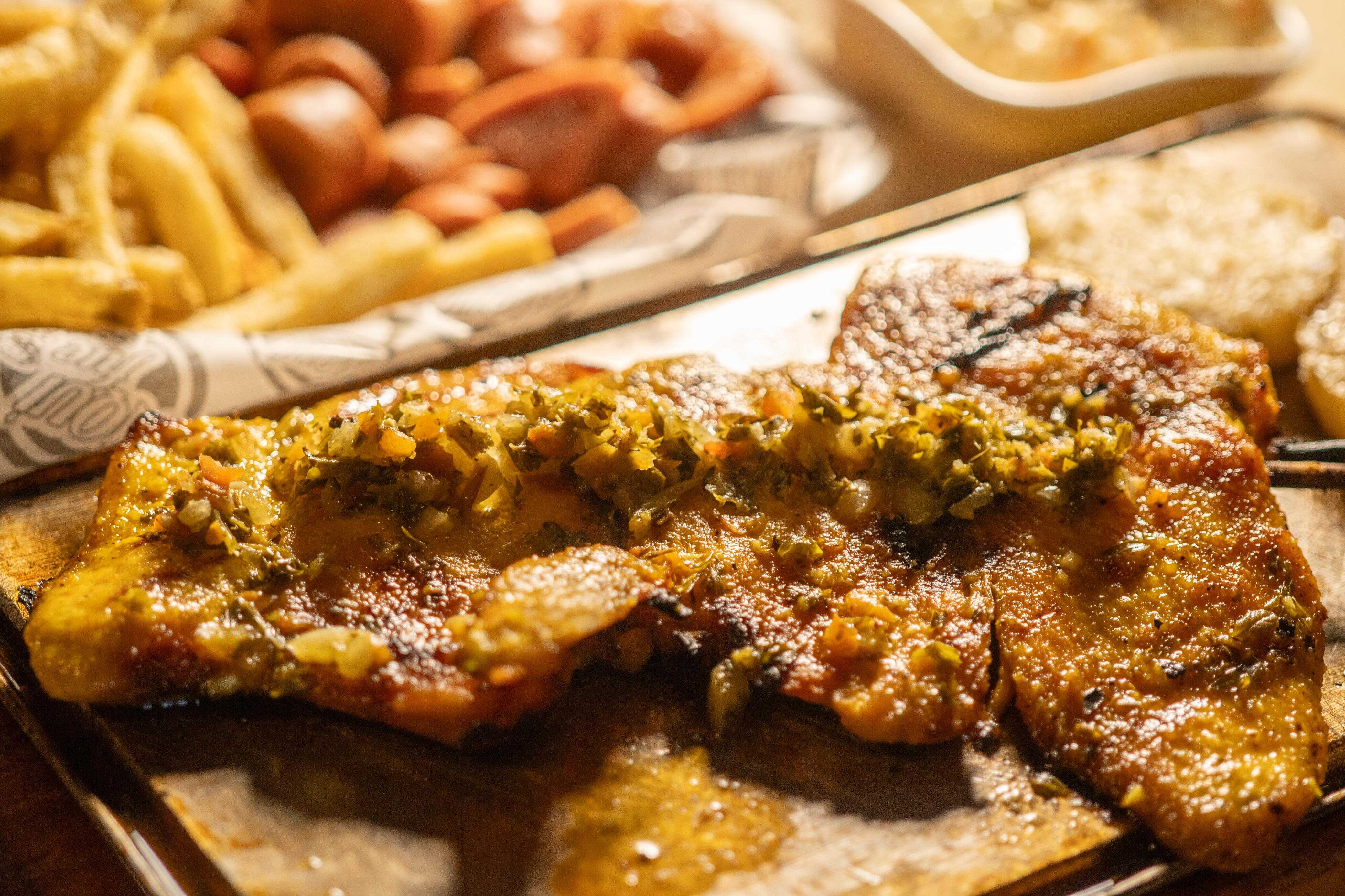 Acompañado de papas a la francesa, ensalada de la casa, arepa tela con queso mozzarella, salsa de la casa.