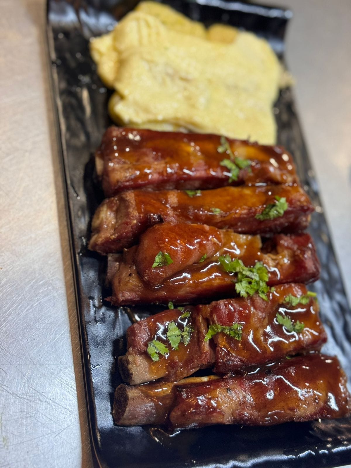 Acompañado de papas a la francesa, ensalada, ripio, arepita, salsa de la casa.