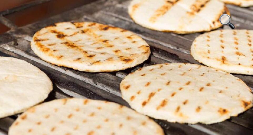Arepa con quesito, 2 huevos, pan y chocolate, 8 onzas.