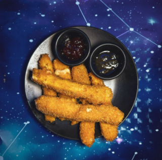 6 Deditos de queso dorados, con salsa secreta de la galaxia.