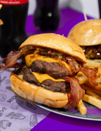 Versión doble, carne, queso y tocineta al doble.