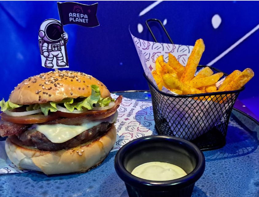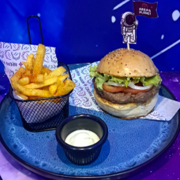 Hamburguesa la Planet Burger 140 g + papas