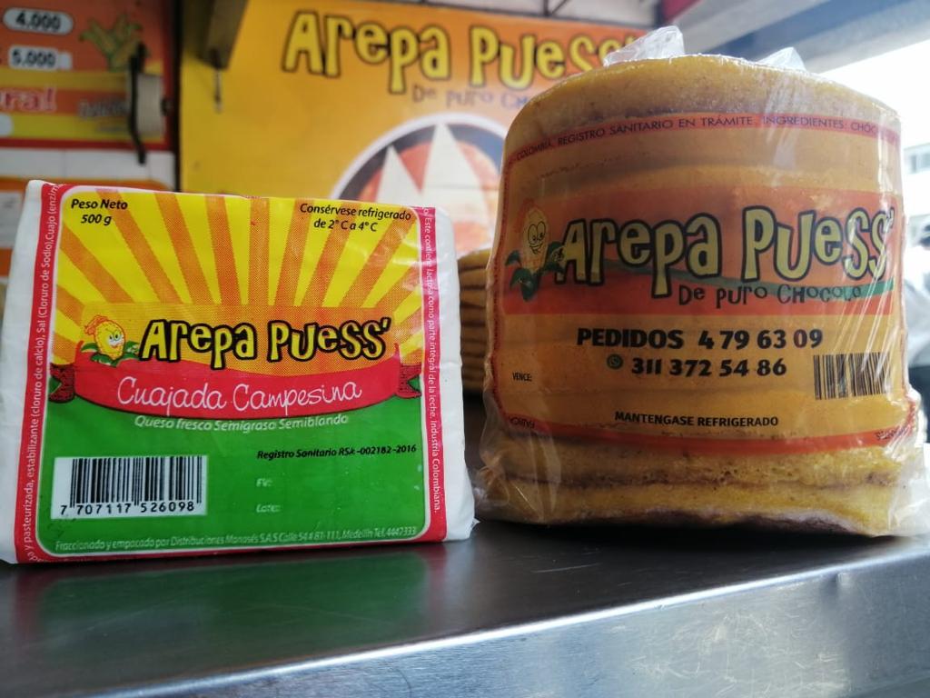 Arepa de chócolo con doble porción de queso cuajada 70 gramos.