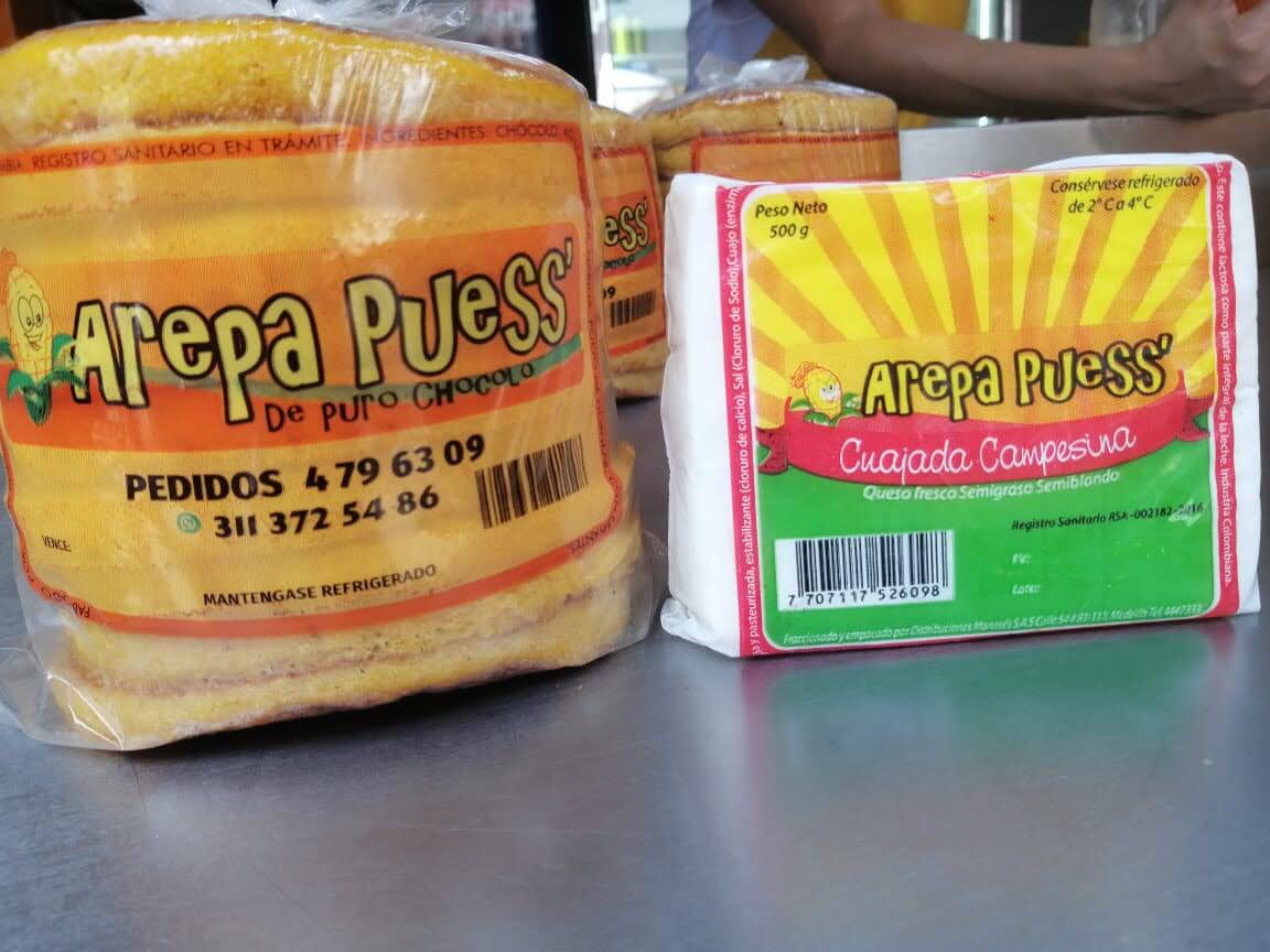 Paquete de 6 arepas de chócolo y 1 libra de queso cuajada.