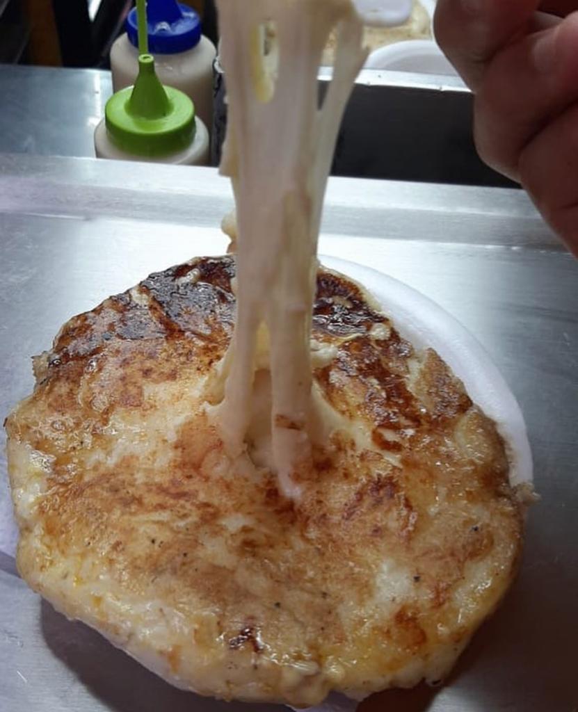 Arepa rellena de queso mozzarella.
