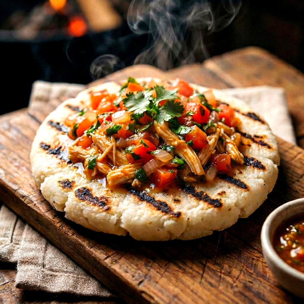 arepa al carbon con pollo desmechado