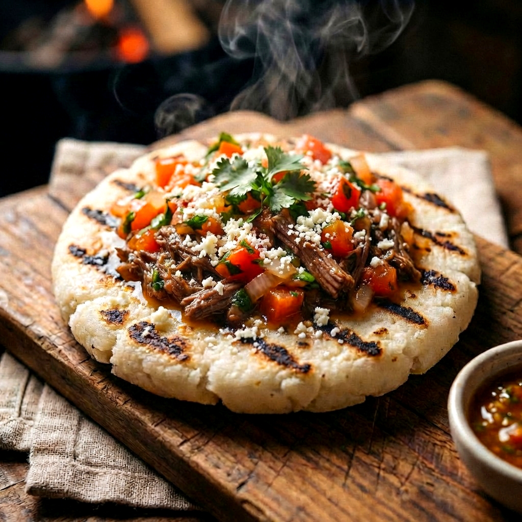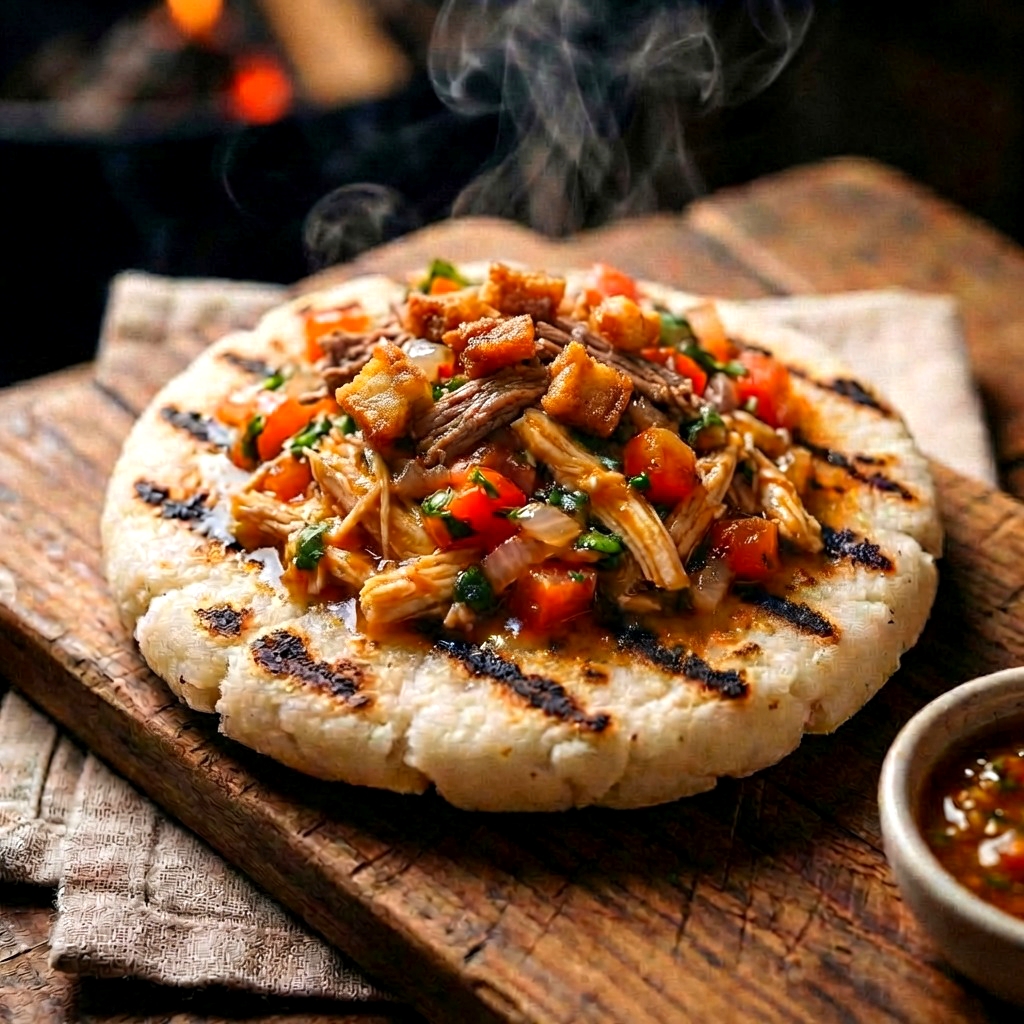 arepa al carbon con carne desmechada