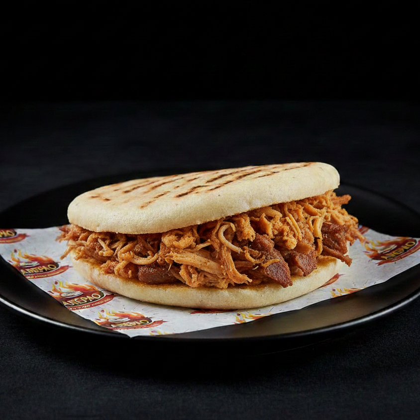 Queso mozzarella, hogao, guacamole, tocineta, carne, chicharrón, BBQ, (180 g de proteína).