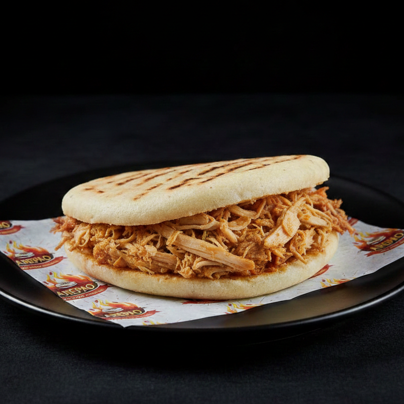 2 Arepas media tela, mantequilla, queso mozzarella, (230 g de proteína).